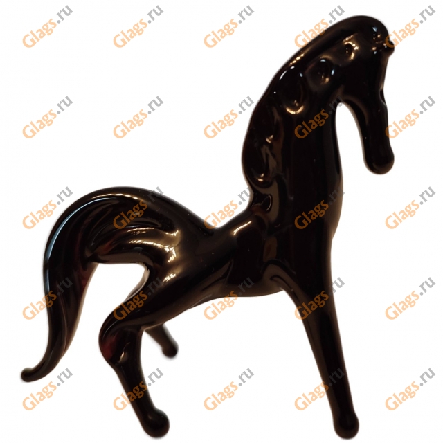 Стеклянный сувенир "Лошадь черная стоя" сделан вручную из цветного художественного стекла.