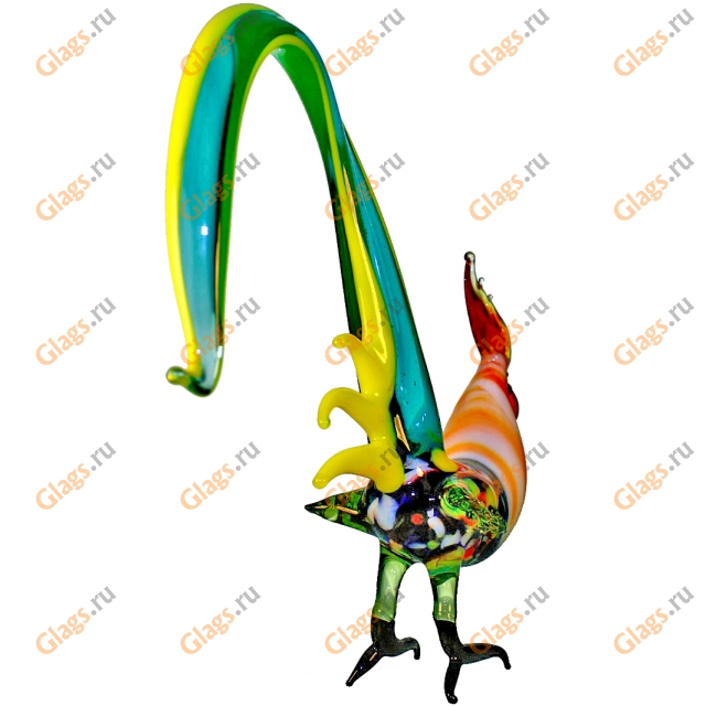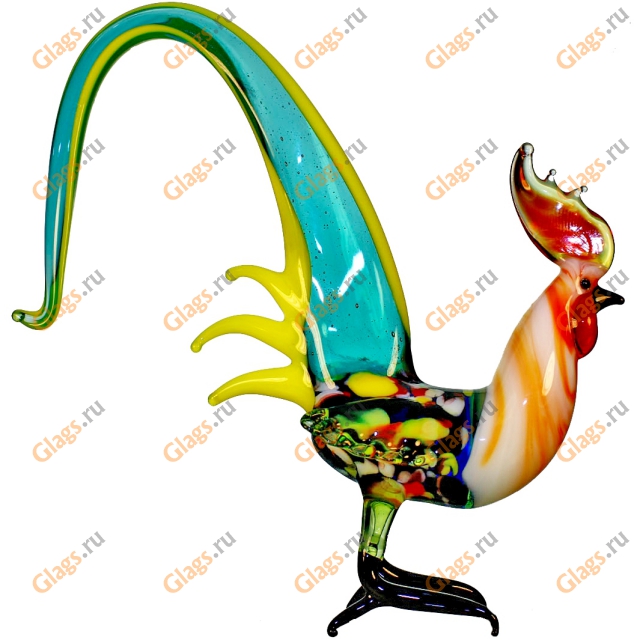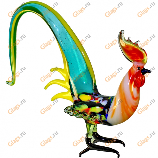 Стеклянный 'Петух хвостоперый' изготовлен вручную. 'Петух хвостоперый' из стекла это VIP эксклюзивный подарок или награда на праздник. Изготовление на заказ стеклянного Петуха хвостоперого любой формы и цвета, с гравировкой.
